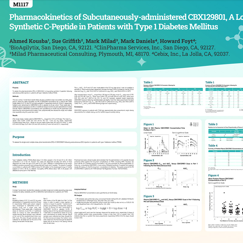 Pharmacokinetics of Subcutaneously-administered CBX129801, A Long-acting Synthetic C-Peptide in Patients with Type 1 Diabetes Mellitus