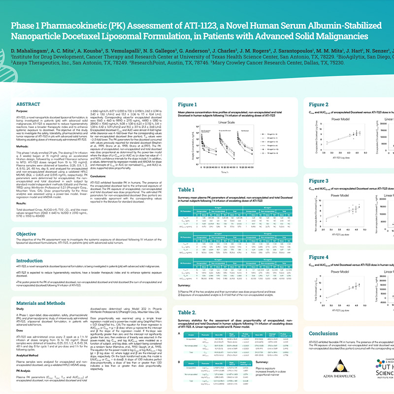 Phase 1 Pharmacokinetic (PK) Assessment of ATI-1123, a Novel Human Serum Albumin-Stabilized Nanoparticle Docetaxel Liposomal Formulation, in Patients with Advanced Solid Malignancies
